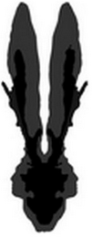 The mark consists of an inkblot design forming the image of a long-eared rabbit with the left and right sides of the head formed by the profile of a man's face.