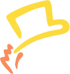 The mark consists of a yellow outline of a stylized hat with an orange outline of a stylized hand on the lower left of the hat.