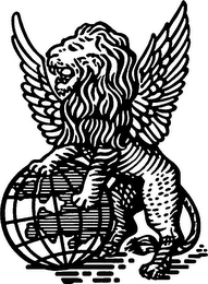 The mark consists of a design of a winged lion facing to the left with his front paws on the earth.