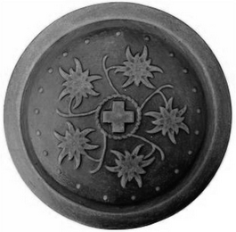 The mark consists of a circle with a series of small dots encircling its inner rim. The center of the circle contains a Greek cross encircled by a braid; five Edelweiss flowers on stems emanate in a circular pattern from the braid.