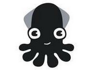 The mark consists of the following: a stylized black squid with large white eyes and grey hair on the right and left side of the head.