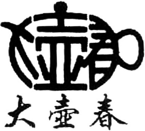 The non-Latin characters in the mark transliterate to "DA HU CHUN" and this means "BIG POT OF SPRING" or "BIG KETTLE OF SPRING" in English.