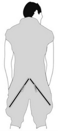 The mark consists of a stylized man wearing clothing with two zippers.