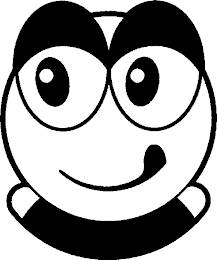 The mark consists of a figure which is designed as the head of a cartoon figure with bright eyes, raising eyelids, a closed smiling mouth showing wagging tongue.