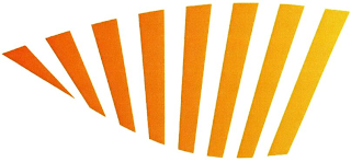 The mark consists of stripes forming an arrow pointing left. From left to right, the first two stripes are dark orange, the next three stripes are orange and the last three stripes are light orange.