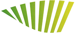 The mark consists of eight diagonal stripes forming an arrow pointing left. From left to right, the first two stripes are dark green, the next three stripes are green and the last three stripes are light green.