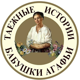 The non-Latin characters in the mark transliterate to "TAYOZHNYE ISTORII BABUSHKI AGAFYI" and this means "GRANNY AGAFIA'S TAIGA STORIES" in English