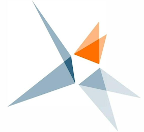 The mark consists of a star with six points comprised of triangles of various sizes in blue, orange and gray.