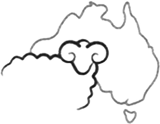 The mark consists of the stylized outline of a sheep superimposed over the left-hand side of a stylized outline of Australia.