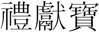 The non-Latin characters in the mark transliterate to "LI XIAN BAO" and this means "ceremoniously present a treasure" in English.