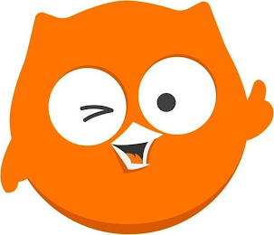 The mark consists of an owl's face, where the owl's face is orange, the eyes are black and white, the beak is white, and the tongue is orange; The white around the design represents background and is not claimed as a feature of the mark.