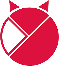 The mark consists of three main elements, the first element being a white quarter circle with red outlines, the second element being a red quarter circle and the third element being a red semi-circle. Together, these three elements fit together and form a circular shape. Two equally-sized red triangles are present above the second element.