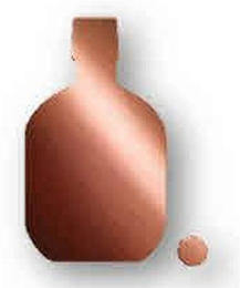 The mark consists of a bottle shaped solid design element with an opening on top with a ridge on either side of the lip of the bottle. The entire bottle appears in a metallic bronze color with a white stripe in the front to show where the light reflects off the design. A metallic bronze solid circle appears to the right of the bottle.
