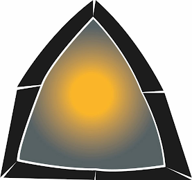 The mark consists of a design of a triangle with a black decorative outer border with a white line at the top, a white line on each side and three white lines at the bottom and an inner white line border. Inside the triangle is gray with a yellow circle in the middle with a yellow outer border.