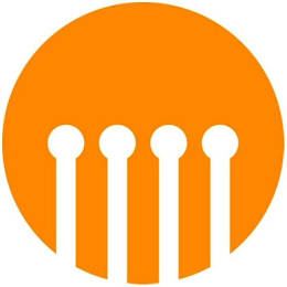 The mark consists of an orange (Pantone pms 151) circular design containing four shapes, each consisting of rectangular band ending in a circle, which extend from the bottom of the circle towards its center. The color white represents background, outlining, shading, and/or transparent area and is not part of the mark.