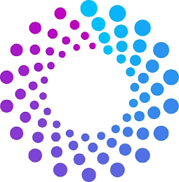 The mark consists of a circle formed by shaded circles in a swirling pattern with in the inner row being the smallest and then going to the largest sized circles in the outer rows and the circles being in blue at the top right, then dark blue on right side, then purple at the bottom, then violet in the bottom left side, then magenta in the top left corner.