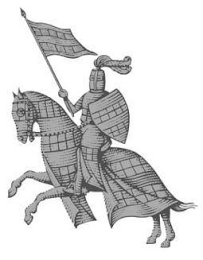 The mark consists of a knight on a horse holding a shield in the left hand and a flag in the right.