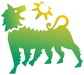 The mark consists of a green stylized six-legged dog with its head turn over its back and the upper portion of its body fading into yellow, with a stylized sun in the upper right in yellow and green.