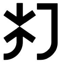 The non-Latin characters in the mark transliterate to "DA" and this means "TO HIT" in English.