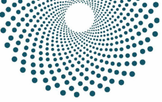 The mark consists of a design of a partial circle cut off at the top that is formed by turquoise blue dots arranged in a circular manner where the dots grow progressively smaller toward the center of the partial circle and terminate in an open center.