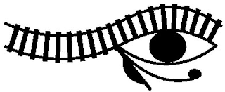 The mark consists of a stylized eye of Horus featuring a curved railroad track that forms the brow of the eye.