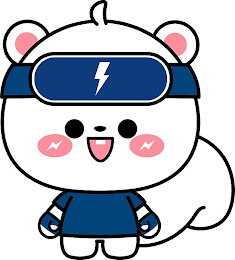The colors blue, pink, black and white are claimed as a feature of the mark. The mark consists of a white squirrel wearing blue clothes, a hairband, and gloves. The squirrel has pink ears and cheeks, with white lightning icons on the hairband and cheeks.