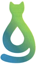 The mark consists of a design of a cat, from right to left, in lime green, turquoise, and blue, with a white droplet shape in the middle of the cat's body. Other instances of the color white represent background and are not a feature of the mark.