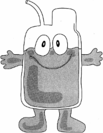 The mark consists of the design of an anthropomorphic blood donation bag having human-like arms, feet, eyes, and mouth.