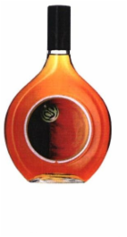 The mark consists of a stylized two-dimensional design of a stylized bottle with protruding and rounded sides in the colors orange, black, red and yellow. The bottle cap is colored black with the base of the cap in the color white. At the center of the bottle is a white circle and inside the circle is an abstract circular design in the colors green and black.