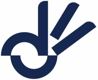The mark consists of the blue outline of two semi-circles offset from one another; the top semi-circle has one blue vertical line and two blue diagonal lines emanating from it.