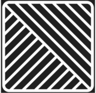 The mark consists of a square divided into two areas by a diagonal line drawn from opposite corners, one area divided into seven parts by a line parallel to the diagonal line, and the other area divided into thirteen parts by a line perpendicular to the diagonal line.
