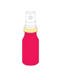 The mark consists of the configuration of a three dimensional, 12 grams, red pump spray bottle with a gold ring: (1) the pump spray bottle has a red cylindrical body with rounded edges at the top and bottom of the red cylinder; (2) the red cylindrical body progressively narrows as it nears the top of the body of the bottle and then immediately expands to form a lip with rounded edges at the top of the red cylindrical body; (3) at the top of the red cylindrical body there is a gold, circular band that overlays the lip of the red cylindrical body and has a decorative crimp design at its bottom. The matter shown by the dotted lines does not form part of the mark and serves only to show the position or placement of the mark.