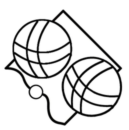 The mark consists of a foreground showing two spheres with four thin stripes per sphere running in perpendicular pairs of parallel strips, and a background showing a square where one side of the square has a wavy line, and a small circle at the midpoint of the wavy line.