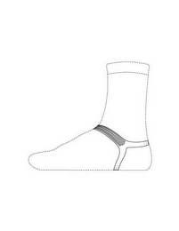 The mark consists of the configuration of a sock or stocking support, which is included in a sock or stocking as an integral component, where the top portion crosses above the foot near the ankle joint and then divides into two portions on the side of the foot where one portion extends behind the bottom of the ankle and the other portion extends beneath the heel of the foot. There are four ridges in the top portion of the support. The shape of a sock shown in dotted lines is not a part of the mark and is only for showing placement of the mark on the goods.