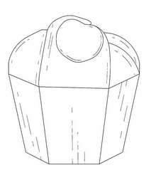 The mark consists of a three-dimensional container for the goods in the shape of a hexagon having a flat bottom, six side walls extending upward and outward from the bottom and curving inwardly from an upper midsection to meet at an apex to form a domed top that is larger than the bottom, one side wall having a terminal end at the top in the shape of a cherry.