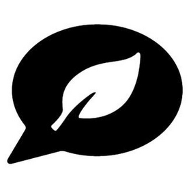 The mark consists of a leaf which appears inside a speech bubble.