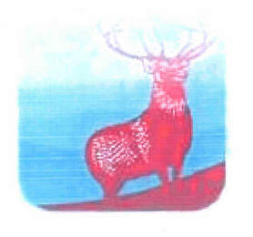 The mark consists of a stag in red with white highlights. The ground the stag is standing on is in red and maroon and in the background is a mountainous landscape in shades of blue and white.