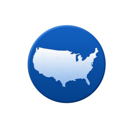 The mark consists of a stylized map of the contiguous United States in a solid blue circle, the map shown in white shading to light blue from top to bottom.