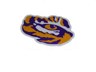 The mark consists of the close up image of a tiger's eye in the colors purple, gold and white.