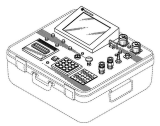 The mark consists of a three dimensional configuration of the arrangement of the HCS9000FL Composite Repair Set's (Hot Bonder's) user interface components featuring a display panel located in the left of the top half of the interface, an input power receptacle right of the display panel, an output power LED indicator right of the input power receptacle, an output power receptacle right of the output power LED indicator, a circuit breaker switch below the input power receptacle, a ground-fault interrupter (GFI) LED indicator right of the circuit breaker switch, a GFI reset switch, a heating blanket overheat supervisory circuit connector right of the GFI LED indicator, an air input port below the heating blanket overheat supervisory circuit connector, a vacuum out port below the air input port, a vacuum monitor port below the vacuum out port, a vacuum control regulator left of the vacuum monitor port, a set of ten thermocouple jacks below the vacuum control regulator and vacuum monitor port, a keypad left of the set of ten thermocouple jacks, an alarm above the keypad and below the display panel, five LED indicators below the display panel and left of the alarm, a power switch left of the keypad, a printer exit left of the power switch and below the five LED indicators, a printer paper feed pushbutton switch below the power switch and right of the printer exit, and the face plate that these components are located on. The broken lines depicting the case, handle and latches indicate placement of the mark on the goods and are not part of the mark.