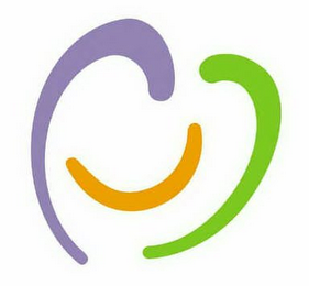 The mark consists of a fanciful heart design consisting of a curved purple band on the left, an orange curved band in the center and a green curved band on the right.