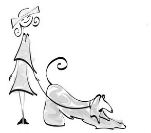 The mark consists of the drawing of a girl and a dog, where the girl is holding the leash of the dog.