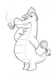 The mark consists of a stylized image of an alligator with a pipe in its mouth and magnifying glass held by its tail.