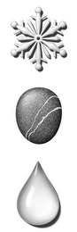 The mark consists of three elements, one appearing above the next with a snowflake at the top, a rock below with specks and two lines and a water drop below.