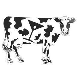 The mark consists of a drawing of a black and white cow with a drawing of a martini glass on the body of the cow in black with a white cut out of an olive inside the glass.