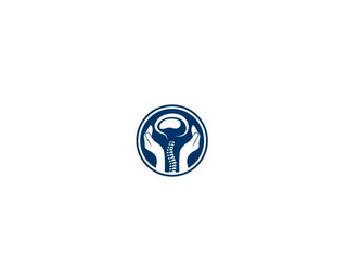 The mark consists of a blue circle and a concentric white circle inside the blue circle, the interior of the white circle generally shaded in blue, with two hands and a depiction of a spinal cord and brain between the hands all in white and all within the white circle.