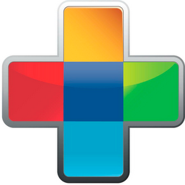 The mark consists of a stylized plus sign. The top section is gold; the right section is green; the bottom section is light blue; the left section is red; the center is blue.
