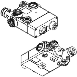 The mark consists of a visible and infrared laser pointer and infrared illumination device with the following features: a rectangular shaped housing with champfered edges and corners, a protruding cylindrical lens housing located in the front left corner of the housing, a smaller protruding cylindrical lens housing with circular ridges located in the front right corner of the housing, with a circular cover located in the middle of the front of the housing, a protruding cylindrical lens housing located on the front left side and top left corner of the housing flanked by angular ramps with scalloped edges on the sides, circular knobs located on the top right front and right front side of the housing, a circular button located on the top left center of the housing, and switch in a soft diamond shape with a raised ridge in the middle of the switch located in the back left side of the housing, with a protruding cylindrical port located on the back right side of the housing.
