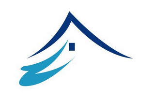 The mark consists of a stylized roof design in navy blue. In the center of the design is a navy blue box. Underneath the roof design are two blue stroke like designs.