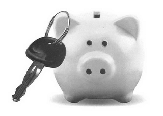 The mark consists of a stylized representation of a piggy bank, with an automobile key on a key ring hanging from its right ear and a shadow underneath it.